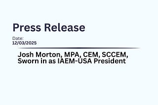 Josh Morton, MPA, CEM, SCCEM, Sworn in as IAEM-USA President