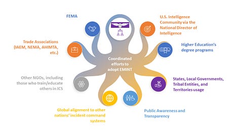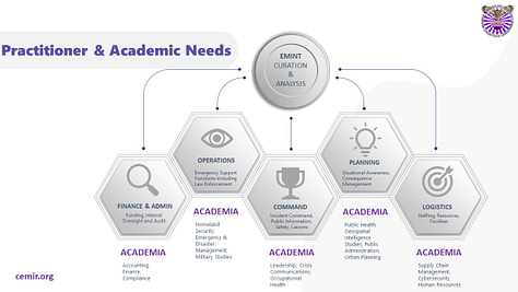 The Center for Emergency Management Intelligence Research (https://cemir.org/) promotes the concept of adjusting the U.S. Incident Management System - as well as establishing steady-state roles - in support of Emergency Management Intelligence (EMINT). Learn more at