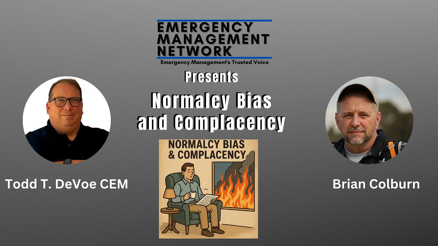 Why do we freeze when we should act? Why do organizations wait for the crisis to end before changing? In this episode, Todd DeVoe and Brian Colburn unpack the psychological trap of normalcy bias and its close cousin, complacency — the silent killers that erode readiness long before disaster strikes.